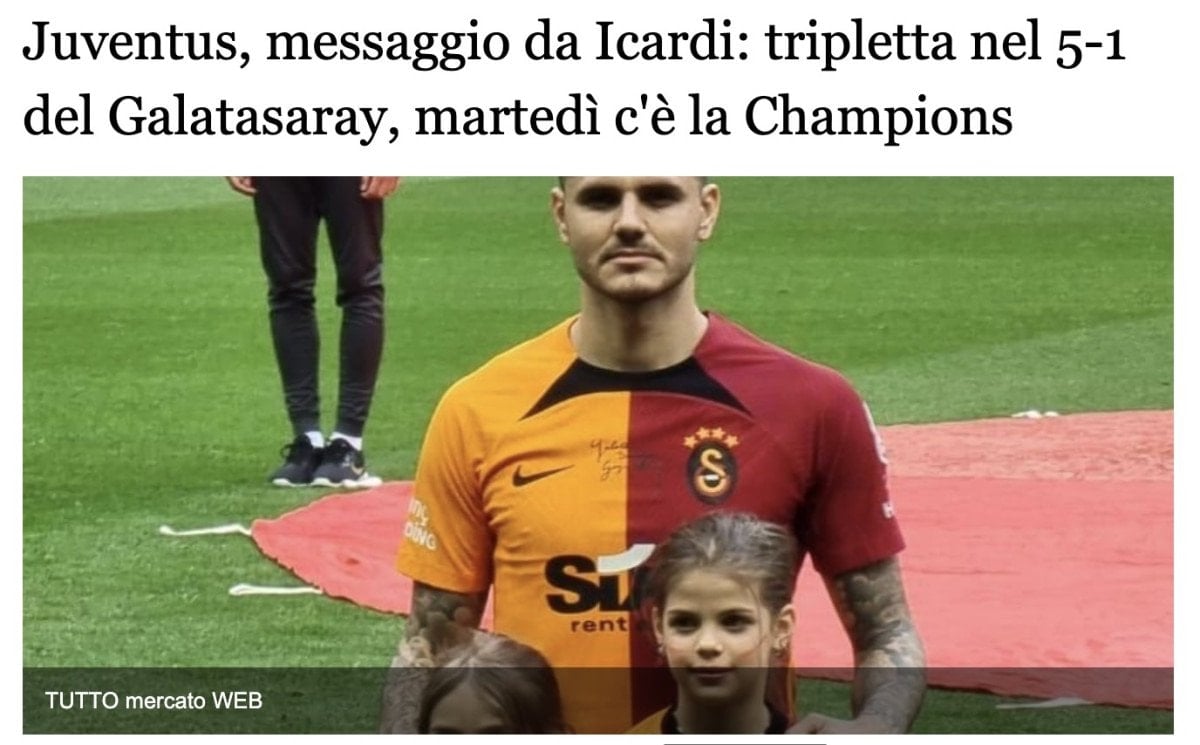 “Mauro Icardi, Galatasaray’ın Süper Lig’de Eyüpspor’u 5-1’lik farklı skorla mağlup ettiği maçta hat-trick yaparak Juventus’a bir uyarı gönderdi. Arjantinli oyuncu, İstanbul ekibinin üstünlük kurduğu maçta hücum hattını otoriteyle yönetti ve rakiplerinin 10 kişi kalmasının ardından fırsatı değerlendirdi.”