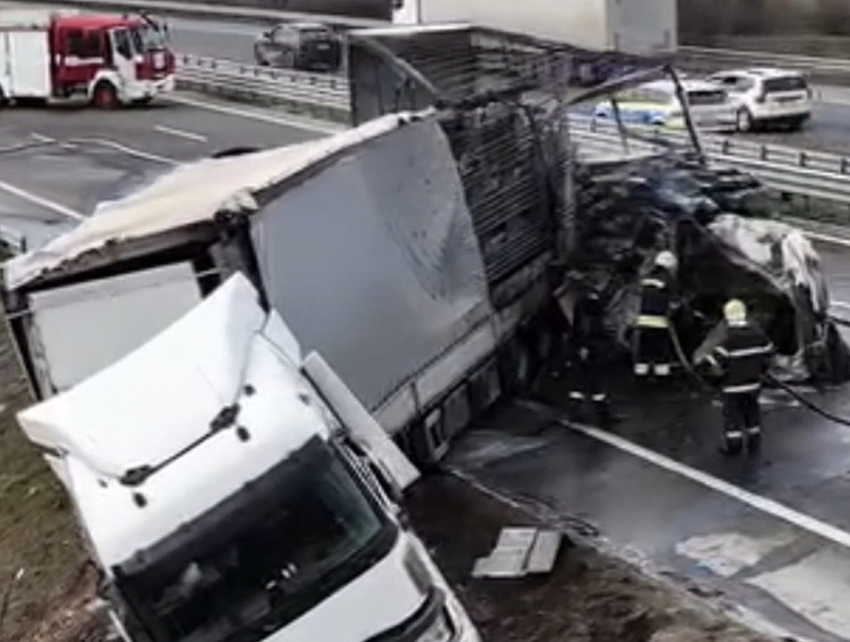 Bulgaristan’ın başkenti Sofya’daki otoyolda arıza nedeniyle yol kenarında duran tıra arkadan gelen başka bir tır çarptı.