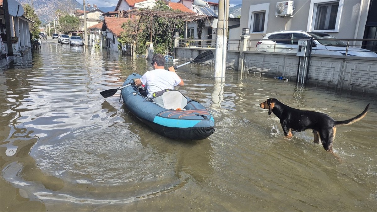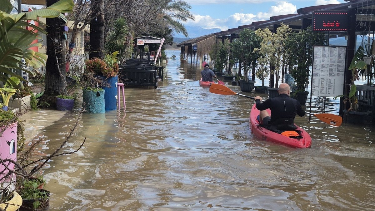 Öte yandan Köyceğiz Gölü’nde oluşan taşkın, su altında kalan işletmeler ve plajlar da AA ekibince dronla görüntülendi.
