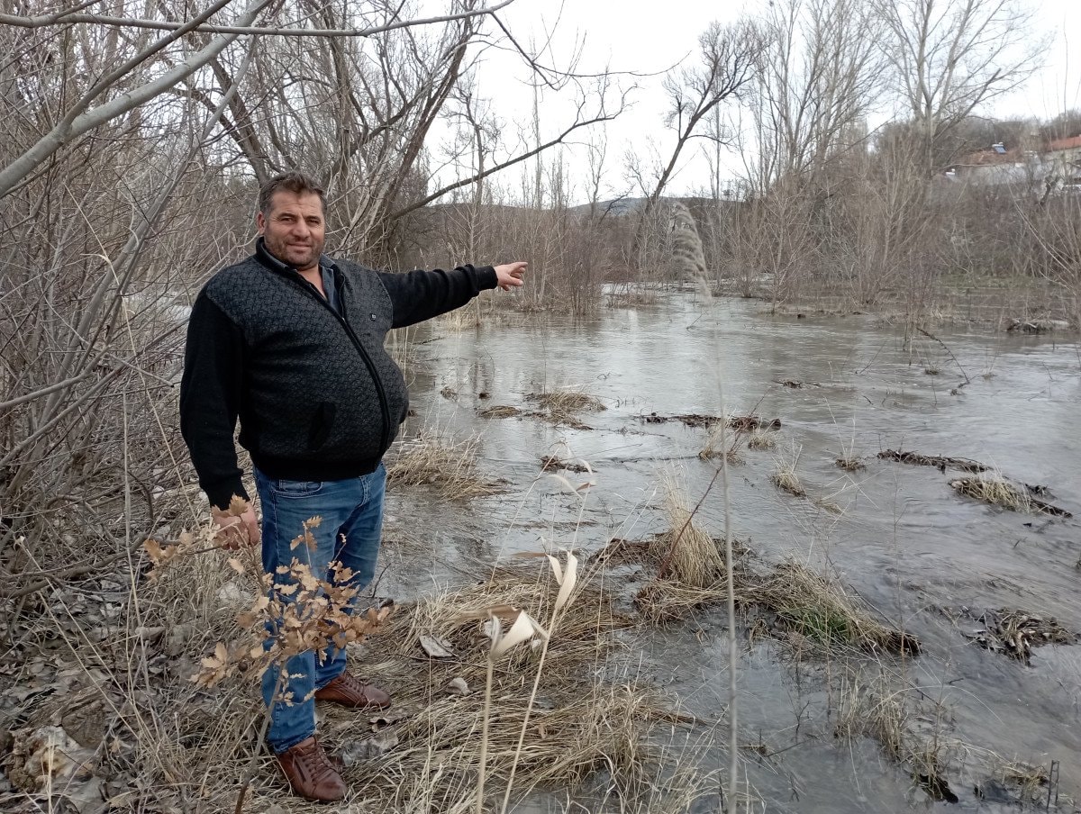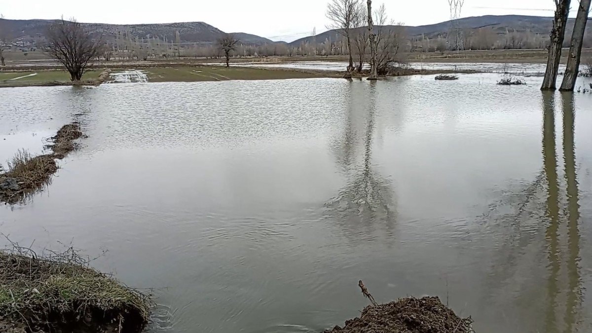 Dere yatağından taşan sular, çevredeki ekili alanlara yayılarak geniş bir tarım arazisini sular altında bıraktı.