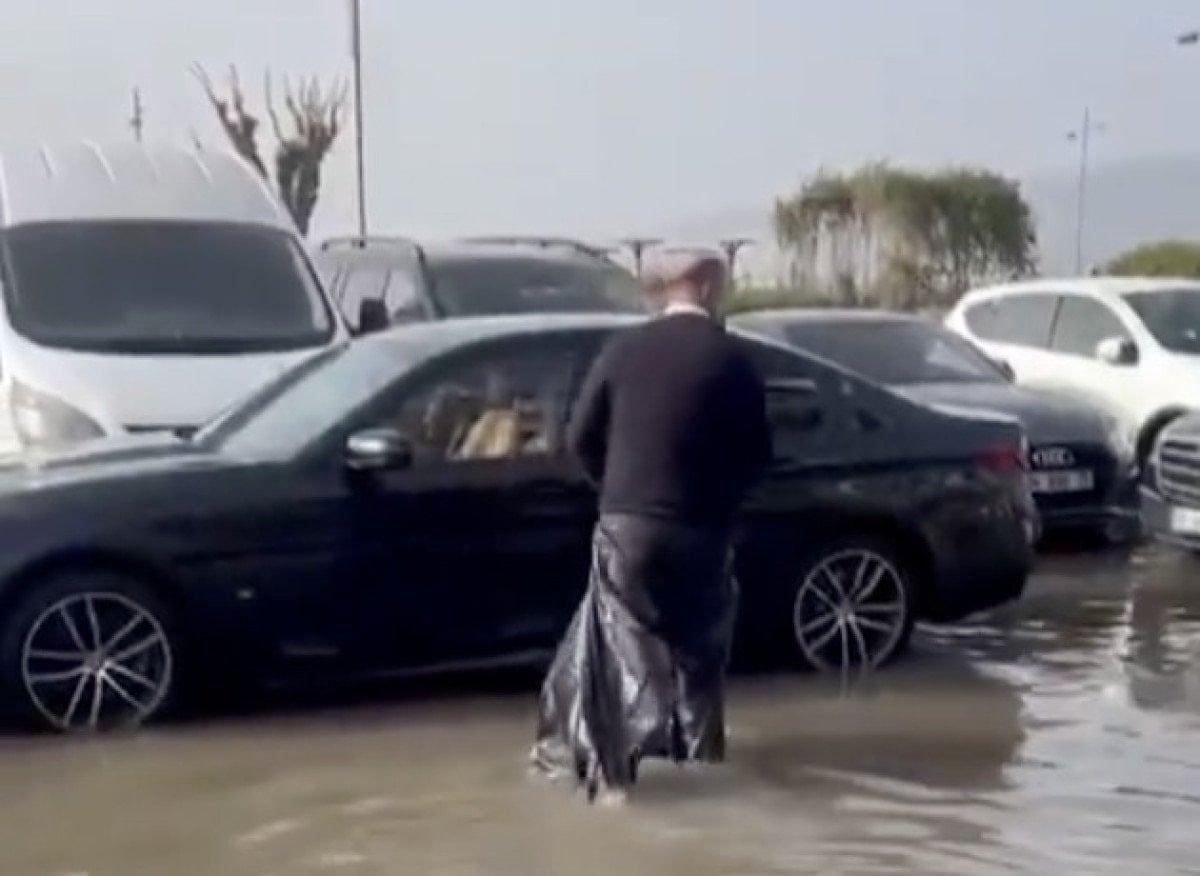 Bazı vatandaşlar, ayaklarına torba geçirerek su içinde yürüdü.