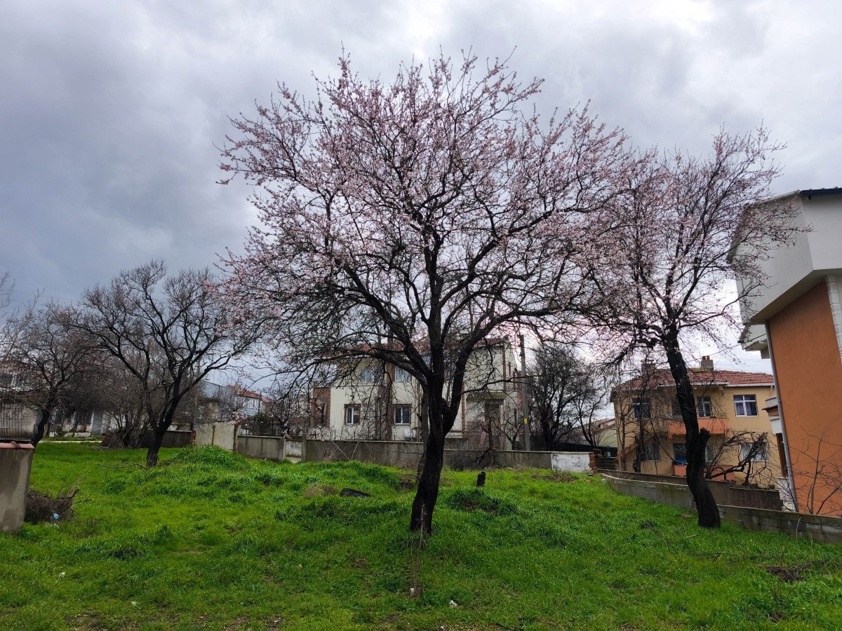Hava sıcaklığının 15 dereceye kadar yükseldiği Keşan’ın bazı bölgelerinde meyve ağaçları çiçek açtı.