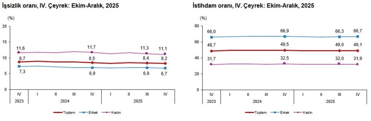 İşsizlik oranı 2025’in dördüncü çeyreğinde yüzde 8,2 oldu