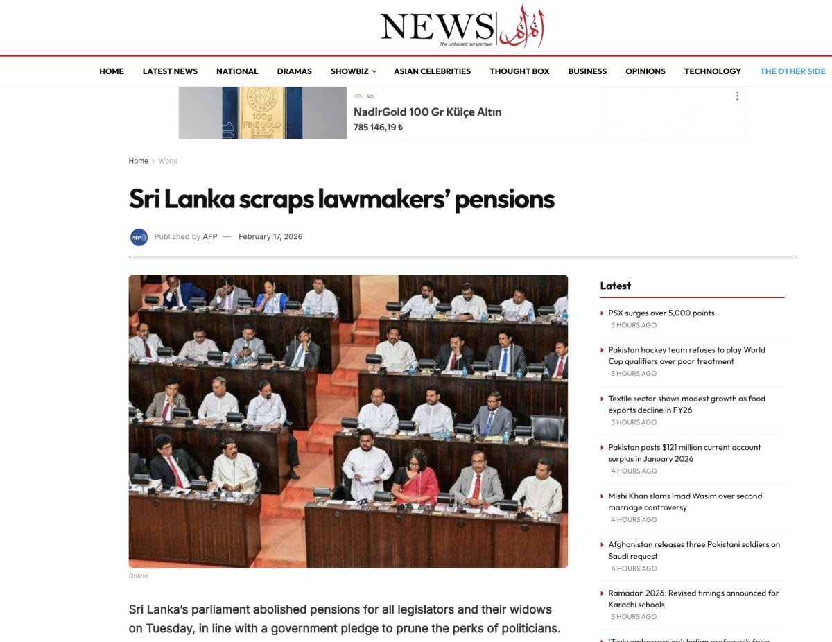 Sri Lanka’da, bir milletvekili daha önce 5 yıllık görev süresinin ardından emekli maaşı almaya hak kazanıyordu. Yeni yasa, halihazırda emekli maaşı alan veya almaya hak kazanan herkese ödeme yapılmasını durduruyor. 2024’te göreve gelen Cumhurbaşkanı Anura Kumara Dissanayake, seçim kampanyası sırasında bu uygulamaya son vereceğine söz vermişti.