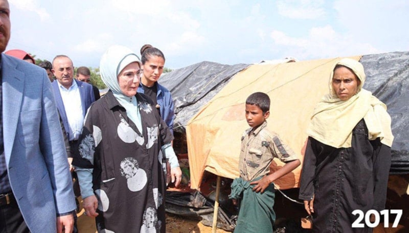 Emine Erdoğan ve Bilal Erdoğan o günlerde insanlık dramının yaşandığı bölgeden kaçıp Bangladeş’e sığınan Müslümanları ziyaret etti.