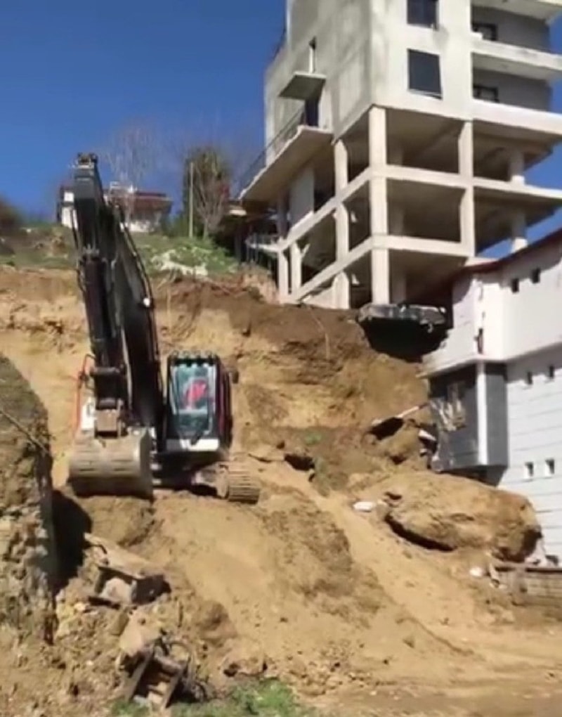 İki yapı arasında herhangi bir istinat duvarının bulunmadığı öğrenildi. Üst kotta yer alan inşaat sahasından kopan kaya, alt kotta bulunan binanın çatı ve üst bölümlerine çarptı.