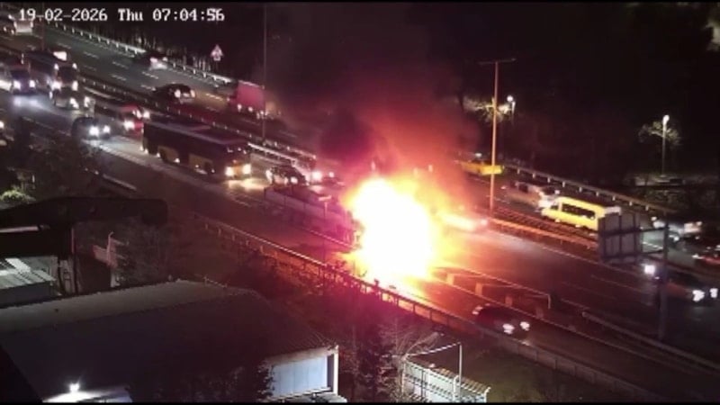 Aracın alev alev yandığı anlar, çevredeki kameralar tarafından kaydedildi.