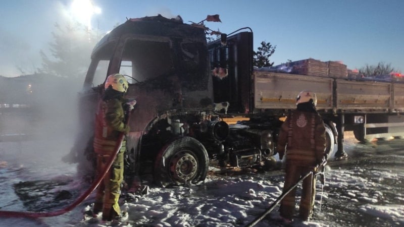 Kısa sürede büyüyen alevler aracı sardı. Durumu fark eden sürücü, aracı yol ortasında durdurarak kendini dışarı attı ve itfaiyeye haber verdi.