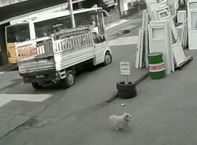 Görüntülerde; Cennet Nesibe Gül’ün köpeğin saldırısından kurtulmak için yola yöneldiği, bu sırada otobüsün kendisine çarptığı, çevredekilerin de yardıma koştuğu anlar yer aldı.