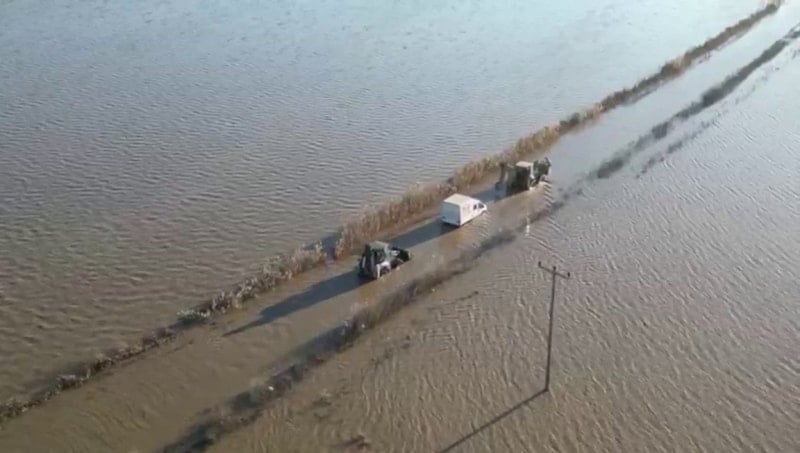 Çiftçiler büyük zarar yaşarken yetkililer, yolun geçici süreyle ulaşıma kapatılacağını bildirerek vatandaşlara alternatif güzergahları kullanmaları yönünde uyarıda bulundu.