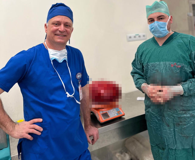 Yapılan tetkikler ve özellikle tomografi sonuçlarında, karın arka duvarından kaynaklanan oldukça hacimli bir kitlenin varlığı belirlendi. Hastanın nefes almakta ve günlük yaşam aktivitelerini sürdürmekte zorlanması nedeniyle ameliyat kararı alındı. Yaklaşık 30 santimetre çapında ve 10,5 kilogram ağırlığında büyük bir kitle Genel Cerrahi Uzmanı Opr. Dr. Sedat Ocak tarafından gerçekleştirilen başarılı ameliyatla çıkarıldı.