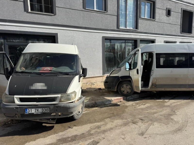Hatay’ın Altınözü ilçesinde meydana gelen trafik kazasında, seyir halindeki bir minibüs park halindeki başka bir minibüse çarptı. Kazada 2 kişi yaralanırken, çarpışma anı çevredeki bir iş yerinin güvenlik kamerası tarafından kaydedildi.
