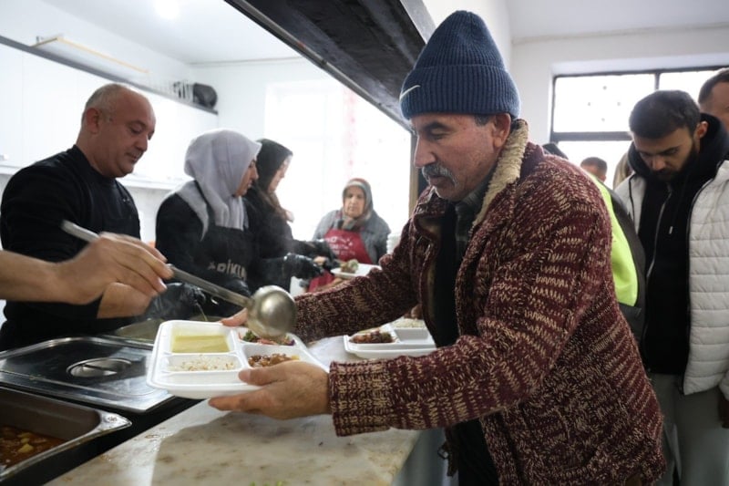 Hazırlanan yemekler kurulan sofralarda birlikte yenilirken, gelemeyen yaşlı ve görev başındaki kişilere ise yemekler ulaştırılıyor.