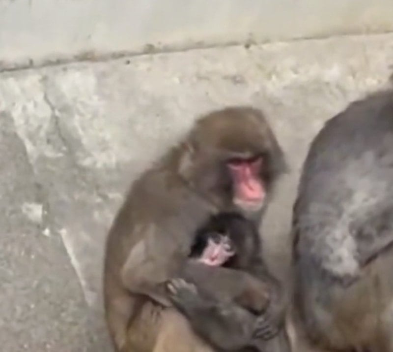 Sosyal medyada yayılan görüntülerde Punch, diğer maymunlar tarafından zorbalandı.