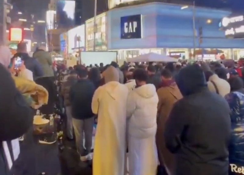 Müslümanlar, New York’un simgelerinden olan Times Meydanı’nda teravih için toplandı.