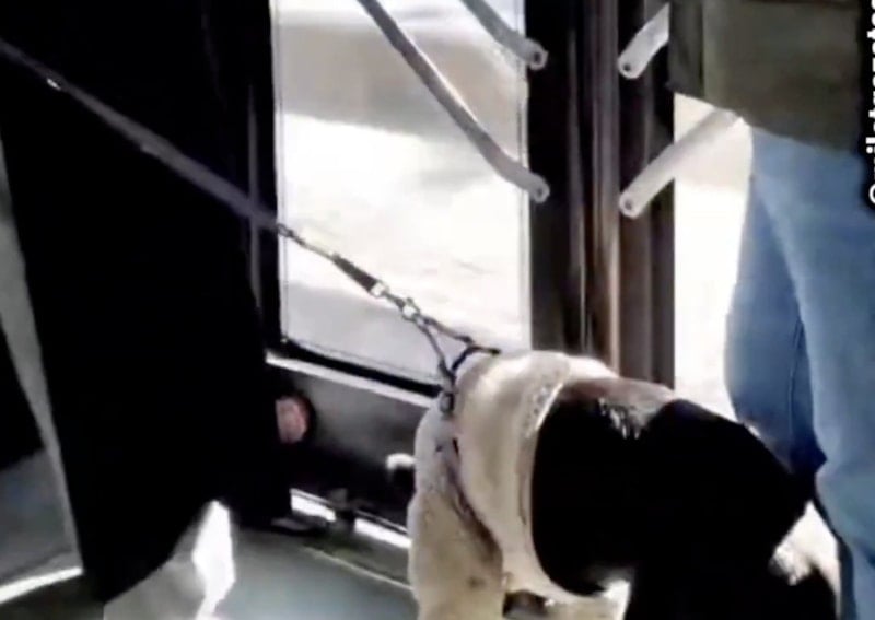 Bu hareket köpekle birlikte seyahat etmeyen bir başka kadın yolcunun tepkisine yol açtı.