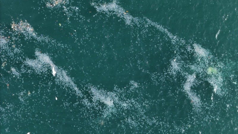 Görüntülerde, akıntı hattı boyunca kümelenen deniz analarının yer yer beyaz şeritler oluşturduğu görüldü.