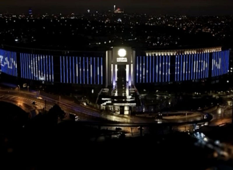 Üniversitenin dış cephesinde yer alan ışıklara “Diriliş Ayı Ramazan Hoş Geldin” mesajı yazıldı.