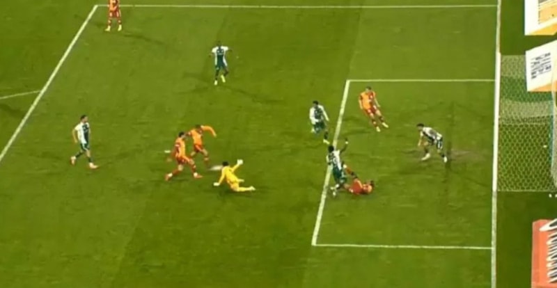 VAR’daki Davut Dakul Çelik’in uyarısıyla pozisyonu yeniden izleyen Karaoğlan, ofsayttaki Sacha Boey’in gol sırasında rakibinin geçişini engellediği için kararını değiştirdi.