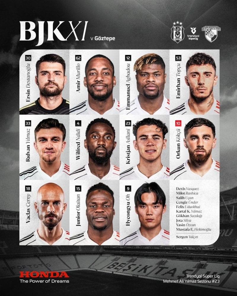 Beşiktaş – Göztepe maçının ilk 11’leri