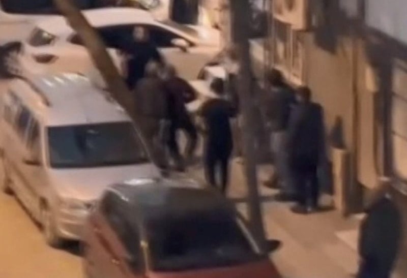 Kısa sürede büyüyen tartışmada taraflar sokak ortasında birbirlerine tekme ve yumruklarla saldırdı.