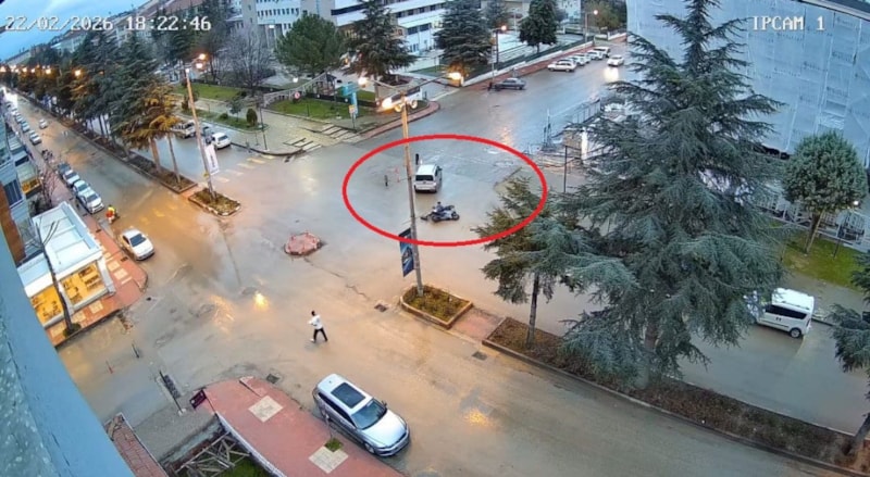 Öte yandan kaza anı, bir iş yerinin güvenlik kamerası tarafından kaydedildi.