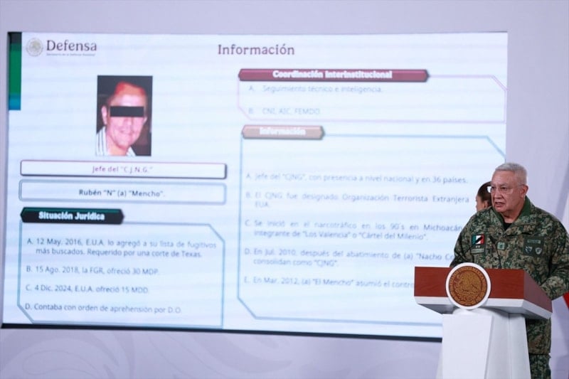 Basın toplantısında konuşan Ulusal Savunma Bakanı Ricardo Trevilla Trejo, “20 Şubat’ta Merkezi Askeri İstihbarat, El Mencho’ya yakın bir kişinin kimliğini belirledi. Bu kişi, El Mencho’nun sevgilisini Tapalpa’daki tesise götürdü ve burada El Mencho ile sevgilisi buluştu.