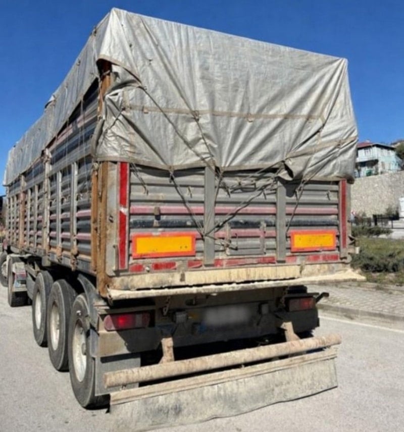 Samsun’un Kavak ilçesindeki Tekeli Denetim İstasyonu’nda karayolları görevlileri, plakaları kapalı kırmızı renkli tırın gri brandalı yarı römorkla kantara girmeden Samsun yönüne doğru seyrettiğini tespit etti.