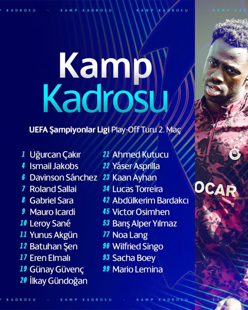 Kritik müsabaka öncesinde temsilcimiz Galatasaray, kamp kadrosunu açıkladı.