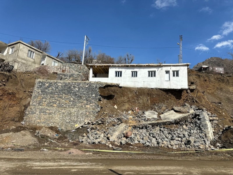 Şırnak’ta yağış nedeniyle istinat duvarı çökünce evin temeli ortaya çıktı