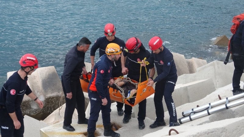 Ekipler, kayalıklara sıkışan Toprak’ı halat, sedye ve merdiven yardımıyla yaklaşık 1 saat süren çalışmanın ardından sıkıştığı yerden çıkarıp sağlık ekiplerine teslim etti.