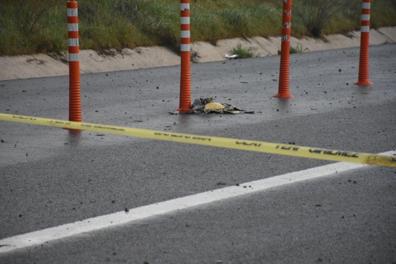 İstanbul-İzmir Otoyolu’nun Karesi mevkisinde yol kenarına düşen uçağın enkazı çevreye dağıldı.
