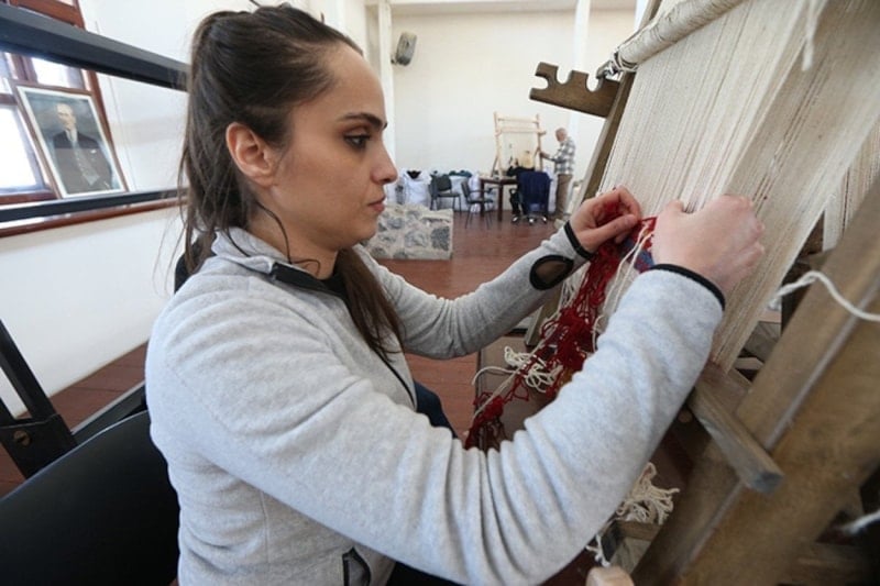Kars’ta unutulmaya yüz tutmuş Kafkas motifleri, kadınların maharetli ellerinde yeniden canlanıyor. Belediye öncülüğünde hayata geçirilen proje kapsamında açılan kursta bir araya gelen 18 kadın, coğrafi işaretli Kars halısını ilmek ilmek dokuyarak geleceğe taşıyor.