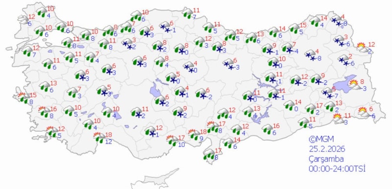 Meteoroloji Genel Müdürlüğü’nün (MGM) son verilerine göre Türkiye’de soğuk ve yağışlı hava hakimiyeti devam ediyor.
