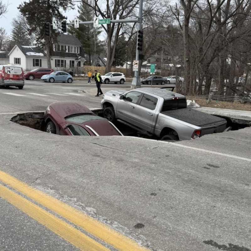ABD’nin Nebraska eyaletine bağlı Omaha şehrinde bir kavşakta aniden yol çöktü. Kırmızı ışıkta bekleyen iki araç, açılan çukura gömüldü. O anlar, çevredeki güvenlik kameraları tarafından kaydedildi.