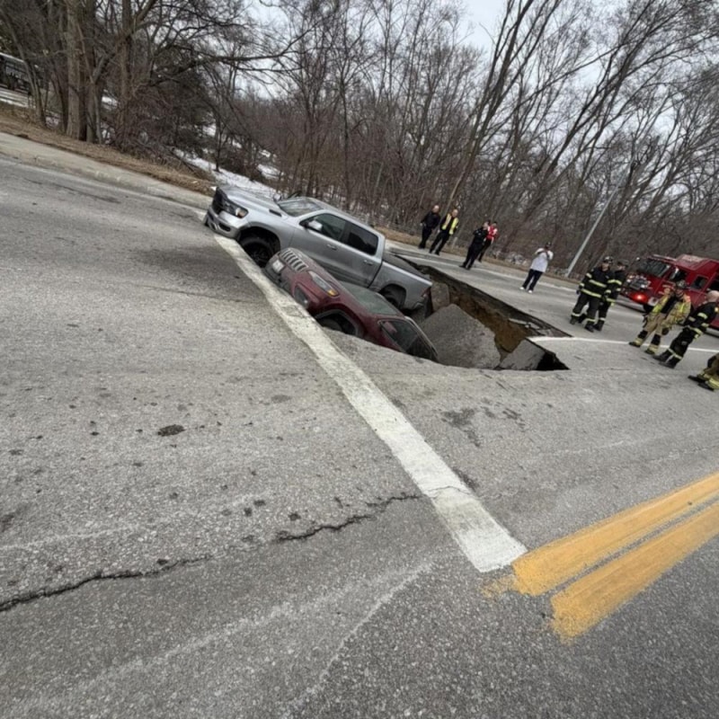 ABD’de yol aniden çöktü, iki araç çukura gömüldü