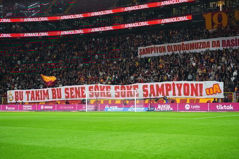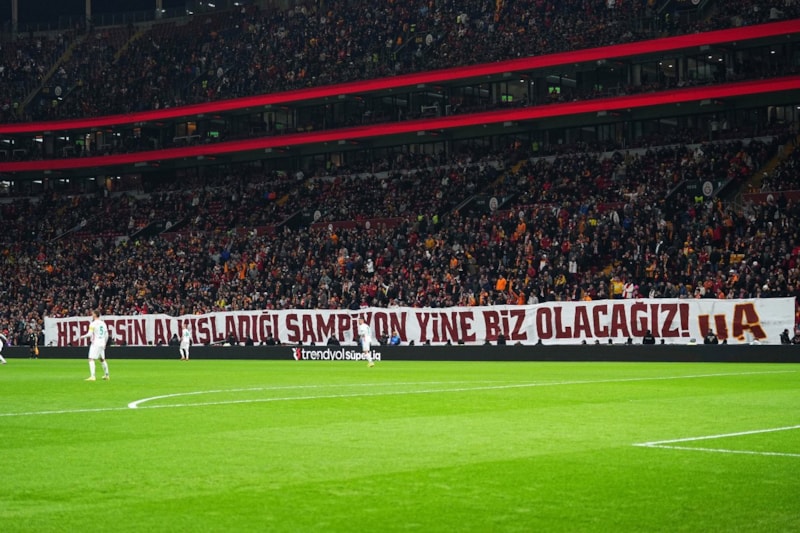Galatasaray tribünlerinde şampiyonluk pankartları açıldı